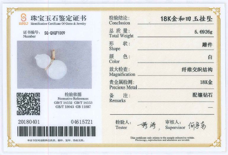 5 | 18k玫瑰金和田玉吊坠(水滴) | 1 | 件 | 18k金、镶钻石、配碧玺 |