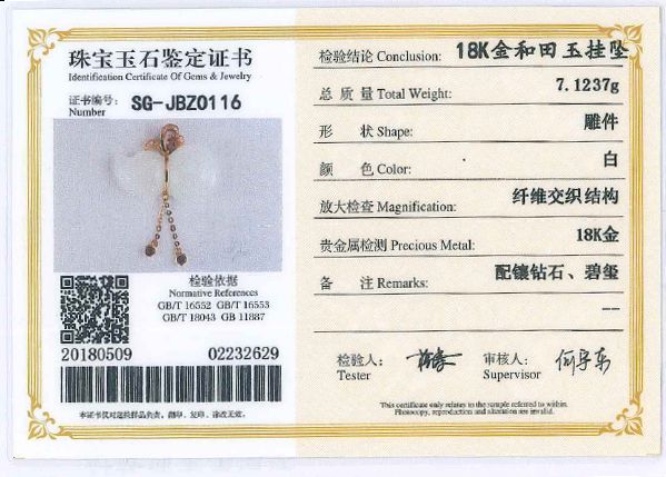 5 | 18k玫瑰金和田玉吊坠(水滴) | 1 | 件 | 18k金、镶钻石、配碧玺 |